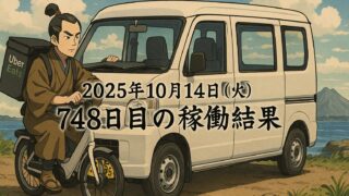 2025年10月14日(火) 748日目、鹿児島ウーバー配達員の稼働結果
