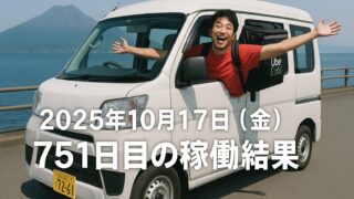 2025年10月17日(金) 751日目、鹿児島ウーバー配達員の稼働結果